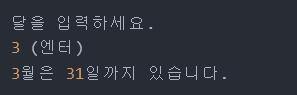- 월을 입력하면 그 달이 몇일로 구성되어 있는지 출력하는 프로그램 작성하기